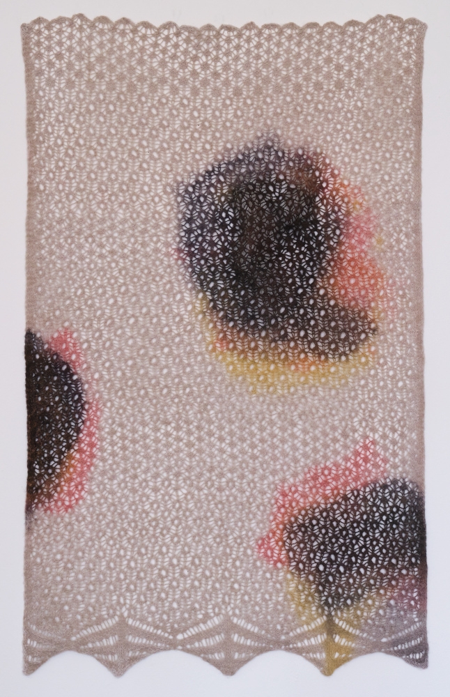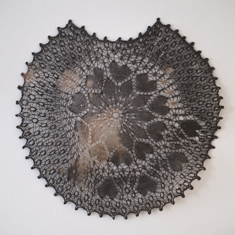 Shroud... A cloth used to obscure and protect. To wrap. Hide. Cover. Clothe. These hand knit laces work at the duality of protection.